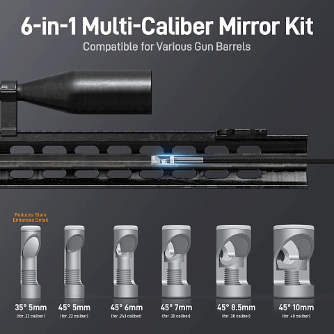 Особенности Зонд Rod Tube длиной 1.16 м. - гарантирует, что даже самые длинные стволы могут быть осмотрены как со стороны дула, так и со стороны патронника; Короткая фокусная длина 10 мм - эффективно работает на расстоянии примерно от 1.5 мм до 25 мм от объекта; Диаметр тонкой камеры 5 мм - идеально подходит для использования для оружия 223 калибра и выше; Высокая четкость изображения для съемки изображений или HD-видео; Боковое зеркало - завинчивайте или вывинчивайте зеркало в зависимости от диаметра ствола оружия, чтобы получить лучшее фокусное расстояние, и используйте «стопорное кольцо», чтобы удержать зеркало в нужном положении; Подсветка из 6 светодиодов в головке камеры - регулировка интенсивности подсветки. Внимание! Эта модель не поддерживает iPhone и iPad.