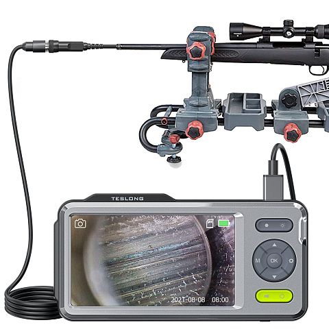 Teslong NTG500 , бороскоп с гибким зондом для винтовки с 5-дюймовым дисплеем высокой четкости. Этот бороскоп оснащен 45-дюймовым гибким зондом и камерой диаметром 0,2 дюйма, которые обеспечивают легкий доступ к любому стволу калибра .22 и более. С помощью съемного зеркала бокового обзора пользователи могут проверить стенку ствола винтовки или снять его, чтобы проверить точку стрельбы. Поддерживаются функции моментального снимка и записи, фото и видео можно сохранять на карту памяти Micro-SD.