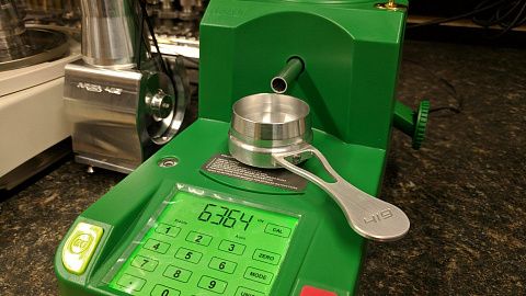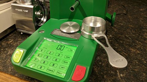 Чашка примерно 2 "в диаметре и 1" в высоту. Ручка торчит около 3 ″. Вес чашки составляет около 700 зерен, но это не уменьшает вместимость весов, поскольку вы все равно можете положить в него 1500 зерен… если это подходит, вы можете физически поместить в него около 400 зерен.
