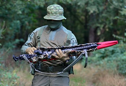 Мгновенное снятие с карабина для быстрого применения оружия. Фиксация на оружии при помощи вшитого резинового жгута.