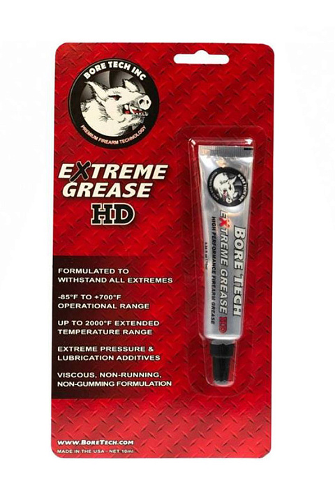 Bore Tech Extreme Grease - это синтетическая сказка премиум-класса с противозадирными добавками, ингибиторами коррозии. Устраняет «гуммирование». Имеет более низкий коэффициент трения, чем смазки на основе графита, сульфита молибдена. Проникает глубоко в металл и обеспечивает смазку даже при высокой температуре. Разработана для смазки огнестрельного оружия, оси шарниров, кулачковых механизмов, там где необходима бесперебойная работа при экстремальных условиях. Используется для обработки боевых упоров, затворов и прочих узлов, обеспечивая их надежное функционирование, продлевая срок службы и повышая эффективность в самых суровых условиях. Именно поэтому смазка называется Extreme.Характеристики Bore Tech Extreme Grease HD Ощутимо уменьшает трение и износ. Обеспечивает водонепроницаемость. Создает отличную прочность пленки и превосходную смазку. Объем 10 мл Так же - фторполимерная смазка на синтетической основе для работы в условиях экстремального давления и в широком температурном диапазоне – от -65°С до +371°С. Имеет меньший коэффициент трения, чем литиевые смазки на нефтяной основе.