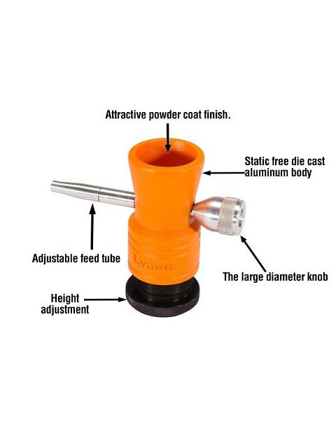Lyman Brass Smith Powder Trickler был разработан с учетом требований серьезного стрелка, сочетающего в себе все функции, которые ему нужны. Начиная от антистатического алюминиевого корпуса, до стального регулируемого по высоте основания, укомплектован дополнительной удлиняющей алюминиевой подающей трубкой. Ручка большого диаметра на подающей трубке дает вам возможность дозировать порох буквально по отдельным гранулам.
