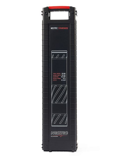 Тип Интегрированный Вес 285 гр. Диаметр 44,5 mm. Длина изделия 215 mm. Длина перед срезом ствола 145 mm. Эффективность 31-34 dB Варианты резьбы "M18x1, M17x1, M16x1, M15x1, M14x1, M14x1,5, M14x1LH, M13x1, M13x1LH, 5/8""-24, 9/16""-24, 1/2""-28, 1/2""-20, " Варианты калибров (максимальный калибр) "6.0 mm 6.5 mm .30 .338 9.5 mm" Изделия NEOTEC выпускаются преимущественно для охотников и тех, кому важен минимальный вес при сохранении качественных параметров изделия. Это достигается более облегченной конструкцией, по сравнению с образцами «заточенными под стрельбу очередями» весом 500-600гр и более. В связи с этим производитель не рекомендует использовать данные изделия при стрельбе сериями и очередями. Особенно это относиться к магнум калибрам.Оптимальный режим работы изделия: 2-3-5 выстрелов, в зависимости от калибра и порохового заряда, с охлаждением между выстрелами. ВНИМАНИЕ. Несоблюдение рекомендаций, приведшее к чрезмерному перегреву изделия, может привести с геометрическим деформациям ДТК, и в отдельных случаях, касанию пули о канал самого изделия с последующим выходом ДТК из строя. Ответственность за нанесенный ущерб и/или полученные травмы несёт пользователь.