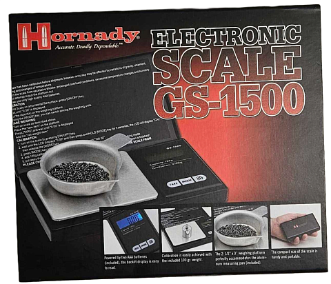 Электронные весы Hornady GS-1500 — это портативный и высокоточный инструмент для релоадинга, обладающий грузоподъемностью 1500 гран (около 97 г) и точностью до 0,1 гран (0,005 г). Компактный дизайн с защитной крышкой идеально подходит для небольших рабочих столов, работая от батареек AAA. Основные характеристики и особенности: Диапазон измерений: 1500 гран / 100 грамм. Единицы измерения: Граммы, унции, караты, граны. Комплектация: Металлическая чаша для пороха, калибровочная гиря (10 г), защитная крышка. Функции: Функция тары (обнуление веса чаши), ЖК-дисплей с подсветкой, автоматическое отключение. Советы по эксплуатации: Калибровка: Требуется при первом использовании или при нестабильной работе. Зажмите [MODE] на 3 секунды, когда появится "CAL", следуйте инструкциям для калибровки 10-граммовой гирей. Стабильность: Устанавливайте на ровную, твердую поверхность без вибраций. Прогрев: Рекомендуется дать весам поработать 1-3 минуты перед точным взвешиванием. Влияние среды: Избегайте сквозняков и электромагнитных помех (телефон).