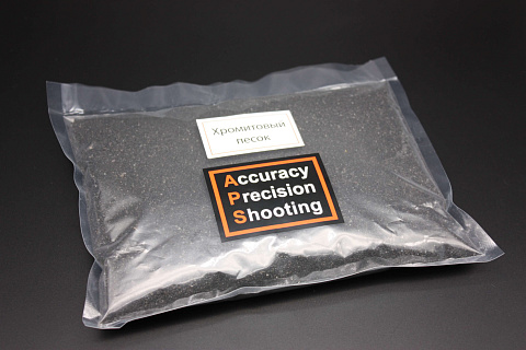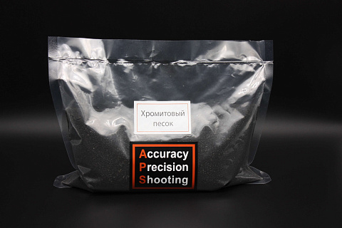 Хромитовый песок — один из лучших наполнителей для БР мешка. Благодаря высокой насыпной плотности (2.7 кг/дм3) мешок, наполненный хромитовым песком почти в 2 раза тяжелее мешка, наполненного обычным песком. А чем тяжелее мешок, тем стабильнее и предсказуемее он ведёт себя при отдаче винтовки. Упаковка по 1 кг, 3 кг и 5 кг.