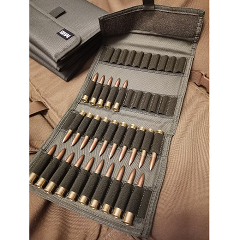 Клатч для патронов изготовлен из износостойкого материала Cordura 1000 в плоском форм-факторе. Компактный, плоский и удобный клатч для патронов:- Удобно переносить патроны в рюкзаке или бауле;- Вмещает 40 патронов;- Патроны не гремят;- Подходит для всех размеров боеприпасов: от .223 до .338