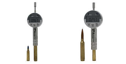 гильзы калибра .30–.416 с диаметром плеча .500″ и более.   Измерение глубины посадки Посадка пуль на одинаковую глубину — ключевой фактор производства качественных патронов для ручной загрузки. Как узнать, посажены ли ваши пули на одинаковую глубину? Есть несколько способов это проверить. Большинство инструментов для измерения глубины посадки позволяют измерить расстояние от донца патрона до точки на оживальной части посаженной пули. На самом деле вам нужно проверить расстояние от плеча гильзы до оживальной части посаженной пули .
