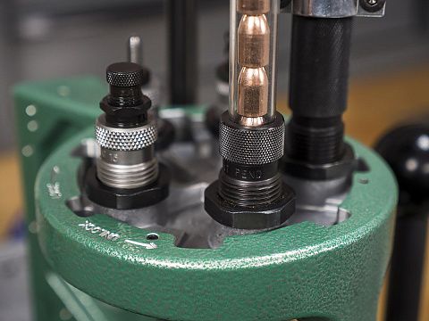• Помещает пулю в горловину гильзы для правильного выравнивания.
