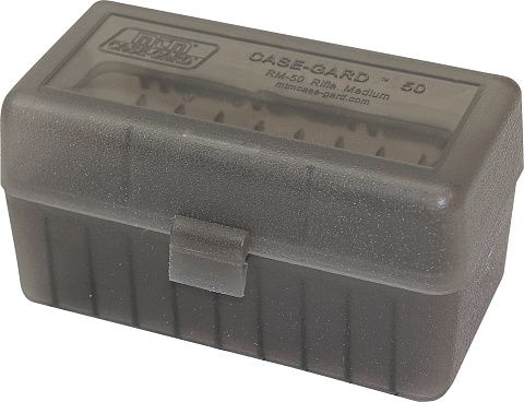 CASE-GARD 50, доступны в восьми размерах, вмещают патроны от .22 Hornet до 375 Remington Ultra Mag. Каждый патрон находится в своем отдельном отсеке. Каждая коробка для боеприпасов CASE-GARD 50 снабжена этикеткой для записи данных о заряде. Все патроны хранятся пулей вверх, если не указано иное.
