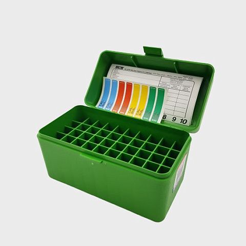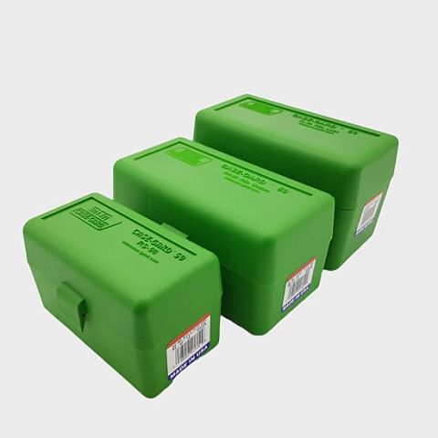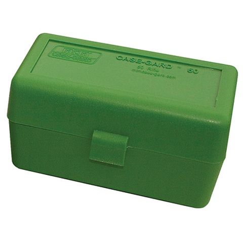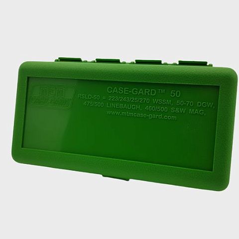 CASE-GARD 50, доступны в восьми размерах, вмещают патроны от .22 Hornet до 375 Remington Ultra Mag. Каждый патрон находится в своем отдельном отсеке. Каждая коробка для боеприпасов CASE-GARD 50 снабжена этикеткой для записи данных о заряде. Все патроны хранятся пулей вверх, если не указано иное.