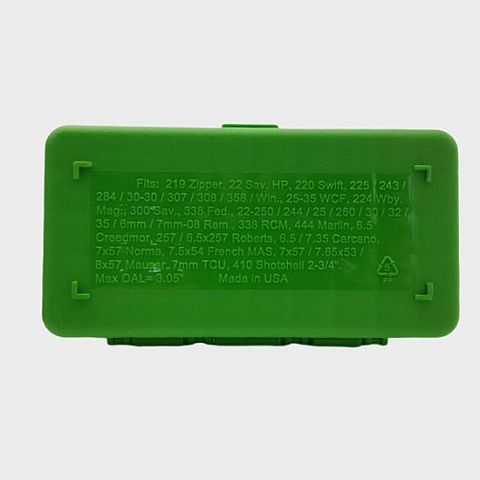 Коробки CASE-GARD емкостью 50 патронов изготовлены из практически неразрушимого полипропилена, который не деформируется, не трескается, не скалывается, не отслаивается, не расширяется и не сжимается. Механическая петля с гарантией 25 лет. Защелка Snap-Lock защищает содержимое от случайного открытия. Текстурированная отделка облегчает захват и предотвращает появление царапин. CASE-GARD 50, доступны в восьми размерах, вмещают патроны от .22 Hornet до 375 Remington Ultra Mag. Каждый патрон находится в своем отдельном отсеке. Каждая коробка для боеприпасов CASE-GARD 50 снабжена этикеткой для записи данных о заряде. Все патроны хранятся пулей вверх, если не указано иное. RS-50 17 Fireball, 17 MACH 4, 17 / 221 / 222 / 223 Rem., 204 Ruger, 218 Bee, 222 Rem. Mag., 223 Rem. HP, 25-20 Win., 300 Blackout, 300 Sherwood, 300 Wisper, 32 Ideal, 32 / 401 Win. S.L., 351 WSL, 38-55 Win., 5.56x45, 6x47, 6mm TCU, 6mm-223 Rem., 7.62 x 37 Musang. Max. OAL= 2.65"