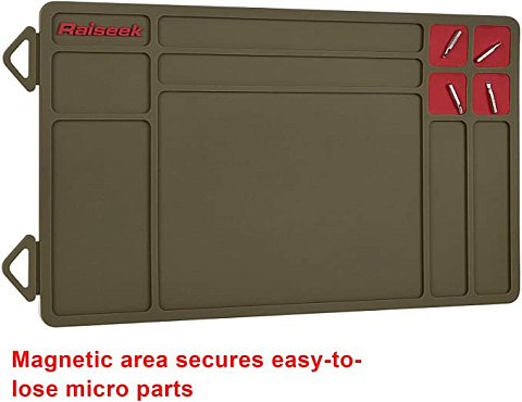 Запатентованная в США конструкция. Углубленные секции достаточно глубоки, чтобы масло и детали не попадали повсюду. В лотках для инструментов пружины и другие мелкие детали находятся в порядке при сборке винтовки и дробовика. Мягкая полимерная поверхность этого чистящего коврика защищает ваше оружие и столешницу. Изготовлен из экологически чистого материала, который не сохраняет запахи. Растворители и масла легко удаляются тканью или бумажным полотенцем. Этот коврик для обслуживания пистолета имеет петли для подвешивания, поэтому его можно легко постирать и высушить. Магнитная подушка на правой верхней стороне коврика для пистолета отлично подходит для размещения компонентов, снятых с пистолета. Размер 36 x 10 дюймов. Хороший размер для сборки винтовки и дробовика. Нижняя часть с нескользящим покрытием, чтобы он не двигался по столу. Прочтите перед покупкой: этот коврик для чистки винтовки поставляется свернутым, его можно положить под книги примерно на одну неделю, после чего концы, наконец, станут плоскими.