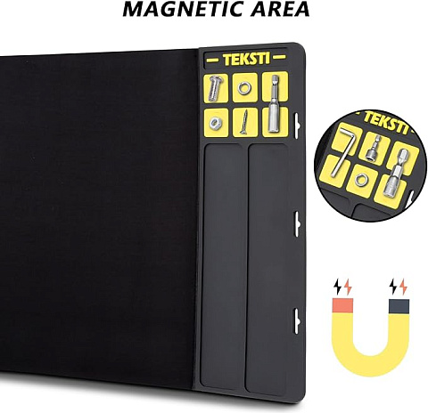 • В коврике есть лоток органайзер размером 16x6 дюймов и 6 магнитных слотов, чтобы ваши чистящие инструменты и принадлежности были организованы.