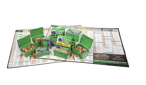 Удобный коврик-подставка с каталогом пуль, производимых Sierra.