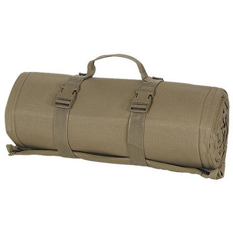 Мат спереди имеет стропы Молле, на них по умолчанию закреплены три подсумка. Подсумки можно снять и установить такие, которые необходимы вам.  Кроме этого есть карман для блокнота, на котором тоже есть держатели для ручек или патронов.  Мат весьма малогабаритный, удобно скручивается и хорош в переноске, в нём есть ручка. Коврик уменьшается при помощи двух штатных компрессионных ремней, при помощи них же данный коврик можно закрепить на снаряжении. Характеристики : Общая длина : 166 см Ширина : 55 см    Ширина крыльев : 35 см Материал : Нейлон