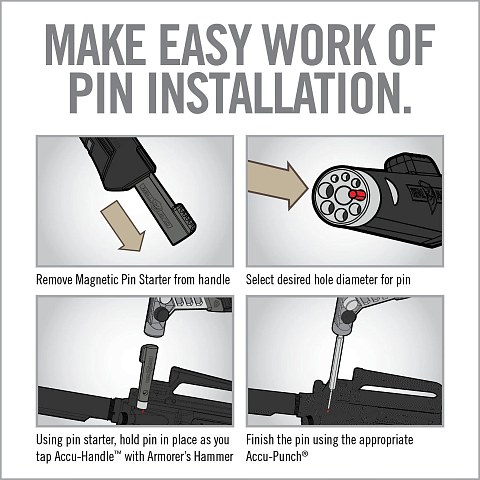 Испытанный оружейниками, Armorer's Master Hammer - это кованый молоток весом 20 унций, длиной 9-1 / 2 дюйма, с прорезиненным покрытием по всей длине, обеспечивающим идеальный баланс и идеальную эргономику для точного управления. Съемный чехол для ударной головки с мягким покрытием и сменные головки со встроенным отсеком для хранения позволяют легко установить нужную головку для конкретного применения. В рукоятке находится съемный пусковой механизм с магнитным штырем из нержавеющей стали, который поможет при работе с огнестрельным оружием.