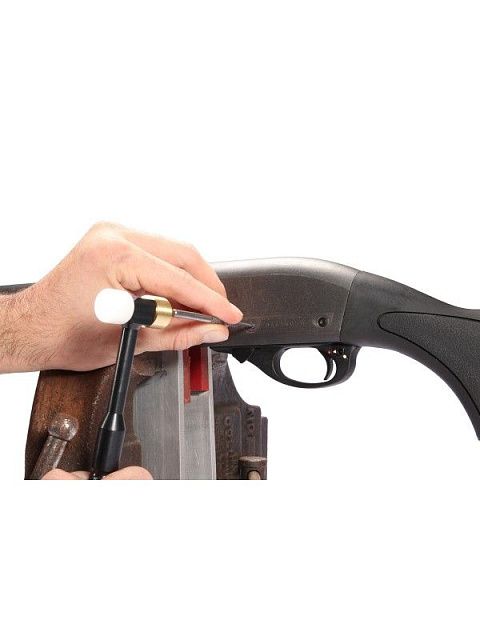 Для оружейного дела и других деликатных работ этот молоток имеет три сменные головки, включая нейлон, латунь и сталь. Для деликатного постукивания внутри ручки имеется латунный выколотый штифт с накаткой.
