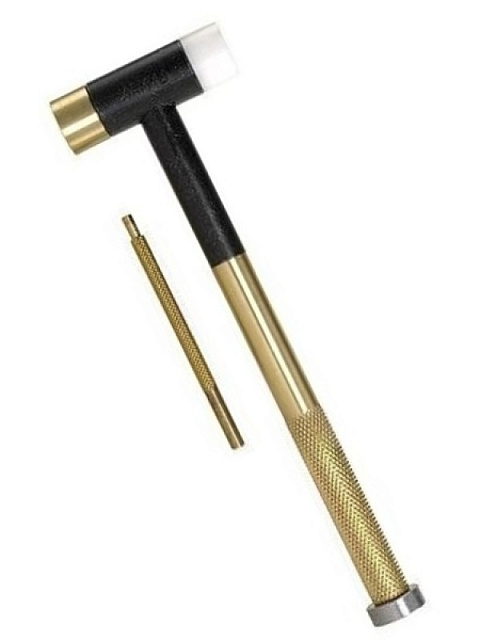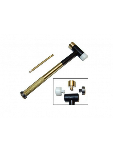 Для оружейного дела и других деликатных работ этот молоток имеет три сменные головки, включая нейлон, латунь и сталь. Для деликатного постукивания внутри ручки имеется латунный выколотый штифт с накаткой.