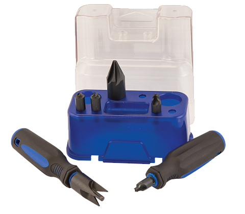 В комплект Frankford Arsenal® Platinum Series Case Essentials Kit входят 2 ручки, инструменты для снятия внутренней и внешней фасок, большой и малый выравниватель/очиститель гильзы капсюля, фреза формирования капсюльного гнезда гильзы под большой и малый капсюль и удобный футляр для хранения.