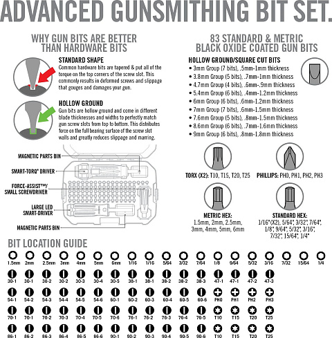 Этот набор был разработан специально для любителей оружия и оснащен самой передовой технологией динамометрического привода, доступной на рынке. Он идеально подходит для сложных работ по монтажу оптики и сборке оружия, требующих повышенной точности и внимания к деталям.
