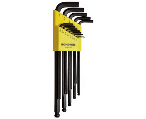 Профессиональный набор из 13 дюймовых длинных Г-образных шестигранных штифтовых ключей Bondhus 16037 в специальном кейсе. Размеры шестигранного профиля от .050" до 3/8". Шестигранники оснащены шариковым наконечником, который позволяет отклонять ключ до 25° без потери сцепления. Большая передача усилия и комфортная работа с винтами в углублениях, благодаря увеличенной длине ключа.