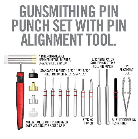 Оружейные молотки и пробойники являются основными инструментами, необходимыми для модификации или разборки огнестрельного оружия. Большинство доступных сегодня наборов представляют собой универсальные перепрофилированные комплекты оборудования. Наборы Accu-Punch Hammer & Punch разработаны с нуля, чтобы лучше работать с оружием. Молоток имеет эргономичную рукоятку и идеально сбалансированный вес, что обеспечивает как точный контроль за забиванием крошечных булавок, так и оптимальное усилие для тех, кому нужно немного «убеждения». Наши пуансоны изготовлены из закаленной стали с никелированным покрытием для защиты от коррозии, а также имеют шестигранные ручки и резиновые уплотнительные кольца для точного контроля. Наш запатентованный инструмент для выравнивания штифтов позволяет легко и точно выравнивать и запускать крошечные штифты. Эти профессиональные наборы для оружейного дела помещены в сверхпрочный стоячий футляр.