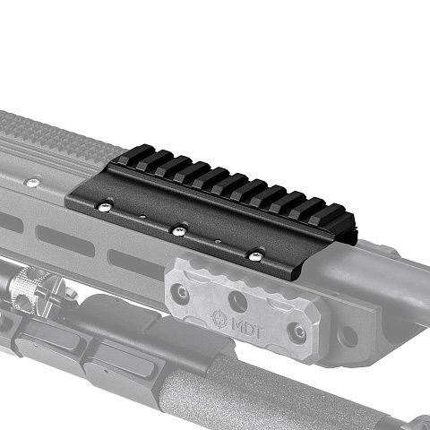 Накладка MDT ACC Elite оснащена планкой Пикатинни НАТО 0 MOA, которая крепится к верхней части цевья шасси MDT ACC Elite с помощью болтов и стальных штифтов. Вы можете устанавливать различные аксессуары, например, приборы ночного видения, тепловизионные прицелы, призмы и другие.   СОВМЕСТИМОСТЬ: - Система шасси ACC Elite - Система шасси ACC Premier GEN2 Forend