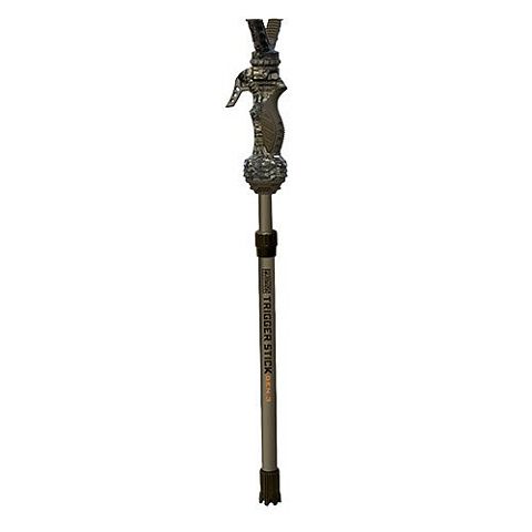елескопическая опора-монопод Trigger Stick™ Gen3 (1 нога) для ружья с регулировкой высоты от 84 до 165 см от Американской компании Primos. Хорошо продуманная телескопическая конструкция, которая позволяет установливать ее крайне точно и быстро, с возможностью регулировки высоты одной рукой. Опора-монопод имеет 3-секционную телескопическую конструкцию, благодаря которой легко складывается до компактных размеров 84 см. Одним из главных достоинств опоры третьего поколения, являются бесшумная телескопическая нога, с возможностью фиксации. Фиксация отдельных секций в разложенном виде осуществляется с помощью так называемого «пистолетно-защелкивающегося» механизма. Для того, чтобы разложить или сложить опору, достаточно лишь нажать на специальный курок. В третьем поколении, теперь сама рукоять плавно вращается (поворачивается) на 360 градусов, что и дает возможность оперативно и точно менять направления стрельбы. Рукоять выполнена из прочного рефленого пластика, что предотвращает вероятность скольжения по ней и создающей дополнительный комфорт при эксплуатации даже при морозной погоде. Также прибор оснащен быстросъемным V-образным упором (вилкой). Вилка снимается и устанавливается быстро и просто, одним нажатием на кнопку (при опущенном фиксирующим флажке). Прорезиненный колпачок у основания опор, не дает, проваливается ногам в рыхлую почву и не проскальзывать на твердом покрытии. Изготовлена с использованием современных технологий закаливания алюминиевых трубок, а сверху его поверхность покрыта прорезиненным полимерным слоем. Таким образом обеспечивается не только прочность конструкции, но и отсутствие скольжения металлических частей оружия во время прицеливания и стрельбы. При этом даже в разложенном состоянии, данная опора практически не сгибается. Опора достаточно универсальна. Её успешно можно использовать не только с оружием, но также и для установки многих оптико-электронных приборов, таких как зрительные трубы, фотоаппараты, видеокамеры и др. Внимание! К третьему поколению Trigger Stick™ Gen3 не подходит: Насадка для опоры Vanguard U-Yoke (арт. U-YOKE) Технические характеристики Артикул: 65813M Тип: Монопод Регулировка высоты ног - 1 нога: от 84 (83,8 см) до 165 (165,1 см) см. Материал трубок: Алюминий 7075 Материал ручки и упора: Пластик и резина Цвет: Камуфлированный / коричневый Вес: 816 гр.