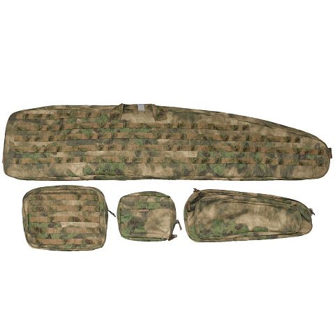 Основное отделение закрывается при помощи мощной двухзамковой молнии, идущей по трём сторонам чехла, что обеспечивает его полное раскрытие. На внешней стороне чехла пришиты стропы, образующие интерфейс Molle, на которые установлены три съёмных модуля, в них можно упаковать всё оборудование, необходимое для организации стрельб. Это могут быть оптические приборы, штативы, сошки, метеостанции или иное снаряжение. Для переноски чехла, в верхней его части, пришиты две прочные текстильные ручки с накладкой.
