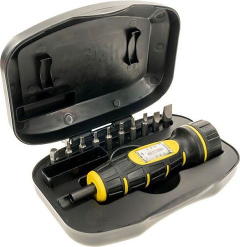 В комплект входят: динамометрическая отвёртка Wheeler FAT Wrench With 10 Bit Set, шлиц Leupold/Buehler windage bit, #10 плоский шлиц, #11 плоский шлиц, #32 плоский шлиц, /32" шестигранник, 5/32" шестигранник, T10 шлиц "звёздочка», T15 шлиц "звёздочка", T20 шлиц "звёздочка", переходник привода с квадратом, твердый пластиковый кейс для хранения и переноски.