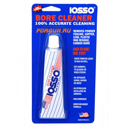 НОВАЯ формула на основе БИО. Высокоэффективная концентрированная паста, которая держится дольше и требует меньше времени на очистку, чем обычные жидкие или аэрозольные чистящие средства. Поскольку это паста, она не может пролиться или попасть в деревянные ложи, ручки или механизмы, вызывая химические повреждения. Iosso Bore Cleaner удаляет медь, свинец, нагар, углеродные отложения, пластиковый налет и ржавчину с поверхности. Он не вызывает коррозии, негорючий и не имеет неприятного запаха.