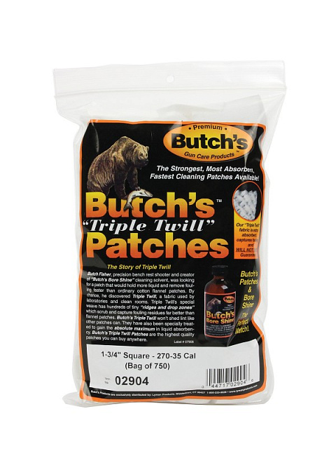Тройные саржевые патчи Butch удаляют загрязнения быстрее, чем обычные хлопчатобумажные и фланелевые патчи. Эти патчи обеспечивают превосходную производительность. Они удерживают больше жидкости и удаляют загрязнения быстрее, чем обычные хлопчатобумажные фланелевые патчи. Специальная ткань Triple Twill, используемая в лабораториях и чистых помещениях, имеет сотни крошечных «гребней и зон падения», которые очищают и улавливают остатки загрязнений намного лучше, чем другие патчи. Патчи Butch Triple Twill не осыпаются и специально обработаны для максимальной впитываемости.