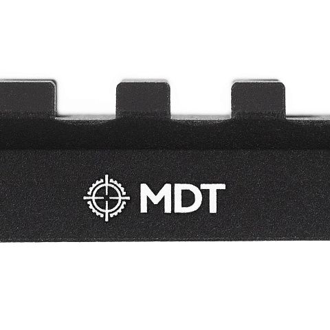 Планки Пикатинни для прицела MDT предназначены для облегчения установки оптики. Они изготовлены из алюминия 6061-T6, а затем подвергнуты жесткому анодированию в черный цвет для обеспечения долговечности. Нижняя часть направляющих имеет профилированную форму, позволяющую устанавливать планку заподлицо со ствольной коробкой и соответствовать геометрии отверстия для выброса. Эти направляющие имеют наклон 20 МОА, что обеспечивает дополнительную регулировку высоты прицела*. На моделях, где конструкция затвора допускает такую ​​возможность, в профиль нижней направляющей встроен выступ отдачи.