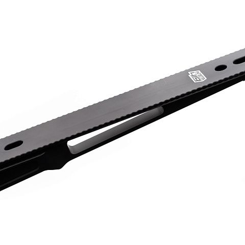 На протяжении многих лет мы видели много винтовок Accuracy International на матчах, и каждый раз мы раздражались, наблюдая, как стрелки пытаются перемещаться по большому пластиковому бугеру перед магвелл. После того, как мы сами приобрели Pre-14 AX и сразу же разобрали его (очевидно), пришло время попытаться решить эту проблему. Представляем первую планку цевья полной длины для AI AX (подходит для шасси или винтовки AX). Эти рельсы проходят от магнита до конца цевья с постепенным наклоном 5 * (короткая версия, длинная - 4,5 *). Этого достаточно, чтобы прикрыть «хребет» цевья, но не влияет отрицательно на то, как винтовка стреляет или держит в руках - очень популярные серии прикладов Manners PRS имеют шаг 3 *. Мы также добавили резьбовые отверстия на каждом конце рельса для стопоров безопасности (чтобы что-либо случайно не соскользнуло) и заглушку для крепления ремня при съемке со штатива. Если в нижней части вашего цевья есть 11 отверстий для ключей (большинство короткоствольных винтовок и систем шасси), вам понадобится КОРОТКАЯ направляющая. Если у него 14 слотов (большинство AX MC или Long Action), вам понадобится ДЛИННАЯ рейка. Рельс изготовлен из алюминия 6061 и анодирован с твердым покрытием. Они весят 11 унций (короткая модель). Каждая направляющая поставляется с заградительным упором, который может быть установлен перед магнитным колодцем для защиты магазина при его столкновении с мешком для стрельбы / поддержки. Этот баррикадный упор весит чуть более 2 унций.