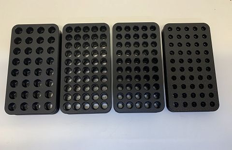 Наши подставки для гильз. Мы выполняем дополнительный этап обработки второго сквозного отверстия для прохождения горловины, позволяя саже, латунной крошке и другому мусору проваливаться вместо того, чтобы собираться на дне отверстия, как другие подставки для гильз. Это позволяет избежать беспорядка, а также защищает хрупкую фаску на роторе подставки. Наши подставки для гильз также имеют резиновые ножки, предотвращающие скольжение и позволяющие саже и мусору полностью выпасть из подставки.