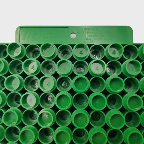 Универсальнподставка для гильз RCBS разработана для использования с большинством стандартных винтовочных и пистолетных гильз, включая семейства WSM, WSSM и Ultra Mag.  Двухсторонний дизайн предлагает три разных варианта размещения на каждой стороне и рассчитан на 50 боеприпасов. Пистолетные гильзы помещаются в приподнятую верхнюю часть блока для легкого доступа.  Ступенчатые отверстия вмещают большие гильзы для пистолетов и винтовок.