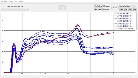 Пользователи могут создавать профили гильз и сохранять данные для каждого калибра. Разные сессии можно сравнивать, чтобы точно увидеть, как меняется (если вообще меняется) усилие посадки от цикла к циклу.