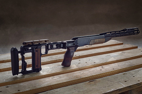 AKILA ACSRx - это модернизируемое шасси, то есть для сборки винтовки вам потребуются следующие детали: ствол, затвор с затыльником и магазин Blaser UltimateX, подходящий для конкретного калибра.