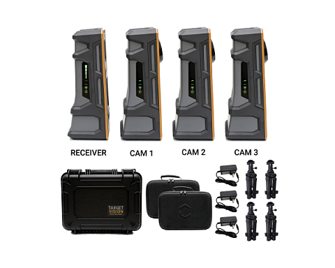 Полный комплект включает в себя 3 камеры (основная + 2 дополнительные), ресивер (приемник сигнала), жесткие чехлы, штативы — мини-триподы, зарядные устройства, инструкция пользователя.