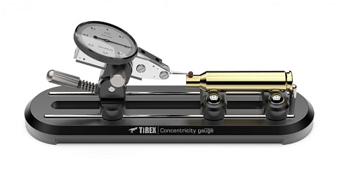 Tirex Concentricity Gauge (прибор измерения биения и проверки концентричности). Возможности: Измерение биения дульца гильзы, как снаружи так и изнутри; Измерение биения патрона; Измерение биения пули; Проверка концентричности. Преимущества: Самый компактный; Комплектуется индикатором Mitutoyo 513-402-10E ; «Тонкая» подводка индикатора к измеряемому объекту; Продуманный дизайн и эрогономика.
