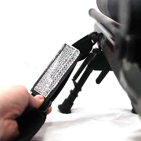 Стрелковая шпаргалка для записей баллистических поправок.  Просто надевается на ремень (погон) винтовки и не сползает за счёт резинового задника. Внутри – пластик для ведения стрелковых записей.