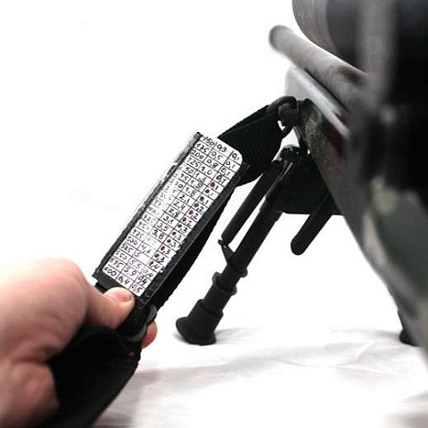 Стрелковая шпаргалка для записей баллистических поправок.  Просто надевается на ремень (погон) винтовки и не сползает за счёт резинового задника. Внутри – пластик для ведения стрелковых записей.