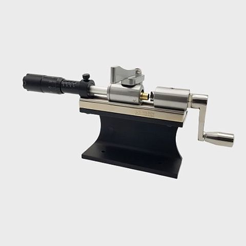Четкие деления микрометра, легко считываемая шкала и возможность фиксации положения. Легко справляется с гильзами от 22 Hornet до 416. Быстрая смена и замер длины гильзы. Флажковый фиксатор держателя надежно удерживает прямое положение гильзы для надежной обрезки и считывания длины.