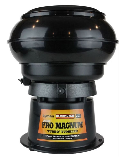 Вибро тумблер Lyman 2500 Pro Magnum Auto Flo Tumbler- тумблер для очистки и полировки гильз от нагара, копоти и грязи. Проверенный, сверхмощный двигатель обеспечивает долговечную и качественную очистку, сделает процесс перезарядки патронов более быстрым и приятным. Идеально подходит для очистки большого объема. Чаша объемом 7,5 литров рассчитана на мощную очистку даже при полной загрузке. Обработка до 1000 гильз 38 калибра или  315 шт  калибра .30-06. за один раз. Улучшенные тумблеры Lyman Auto-Flo автоматически отделяют чистые гильзы  от наполнителя, используя обычное вибрирующее движение устройства.   Когда процесс очистки гильз завершен,  просто вытяньте пробку сливного отверстия, - носитель стекает из выходного отверстия в сливной лоток, поставляемый в комплекте. Все, что остается после слива носителя в ударопрочном корпусе из формованного полимера,- это блестящая, чистая гильза, что дает возможность быстро начать перезарядку. Включает поддон для слива.